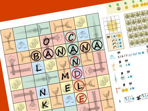 A flip-and-write game that adds "Ganz Schon Clever"-like combos to a word game.